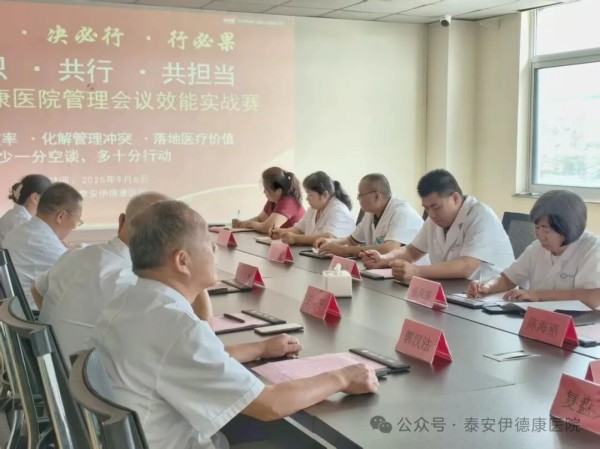 2025 年 9 月 6 日,泰安伊德康医院成功举办医院管理会议效能实战赛。本次实战赛以 “议必决、决必行、行必果” 为核心宗旨,同步倡导 “共识、共行、共担当” 的行动理念,旨在通过实战化场景,提升全体中层即可是负责人的会议组织能力,切实化解管理过程中的各类冲突,推动医疗价值深度落地。