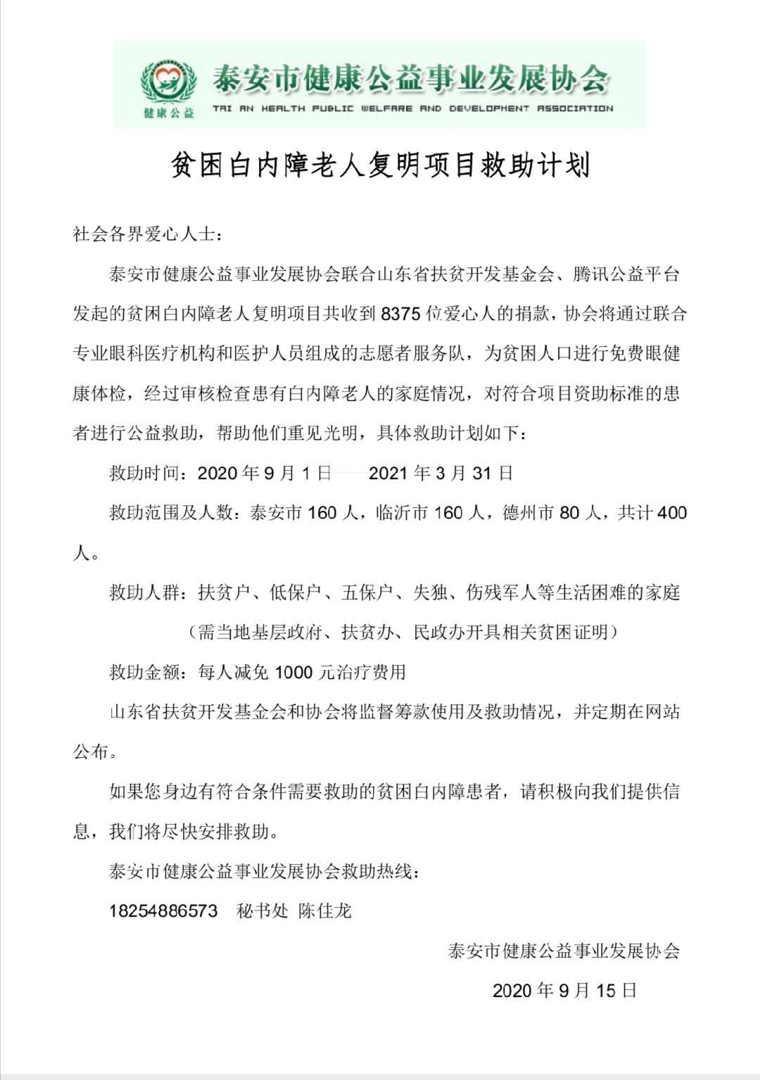 【九九公益】贫困白内障老人复明项目救助计划公示