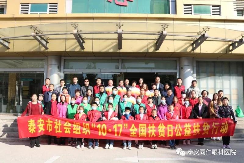 10月17日是我国第7个扶贫日,2020年是打赢脱贫攻坚战的收官之年。为充分发挥社会组织作用,巩固脱贫工作的成果,泰安同仁眼科医院联合泰安市眼科学会、泰安市健康公益事业发展协会志愿者服务队开展“健康泰安光明行.百乡千村精准扶贫”系列活动,为我市坚决打赢扶贫攻坚战贡献力量。