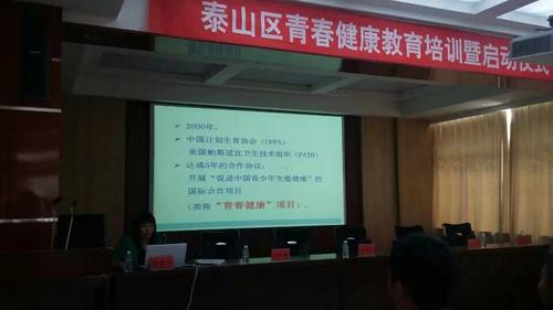 泰山区青春健康教育项目是为落实《山东省计划生育协会青春健康工作五年规划(2014-2019)》, 建立可推广的、适宜的、全面的、可持续发展的青少年性与生殖健康项目示范点,倡导青少年性与生殖健康权利,保护年轻人免受性病、艾滋病、非意愿妊娠和性暴力的威胁,培养一批有作为的热心于青少年性与生殖健康工作的师资队伍”为目标的一个项目。青少年是本项目的第一目标人群,年龄在 10~24岁的校内外青少年和高校大学生是本项目实施直接干预的主要对象。