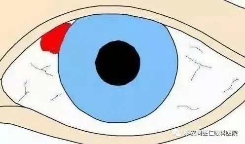 球结膜下出血指的是结膜小血管破裂出血聚于结膜下。球结膜下出血的形状不一,大小不等,常成片状或团状,也有波及全球结膜成大片者。少量呈鲜红色,量大则隆起呈紫色,多发生在睑裂区,随着时间的推移,出血常有向角膜缘移动的倾向,也有因重力关系而集聚在结膜下方者。出血先为鲜红或暗红,以后变为淡黄色,最后消失不留痕迹。