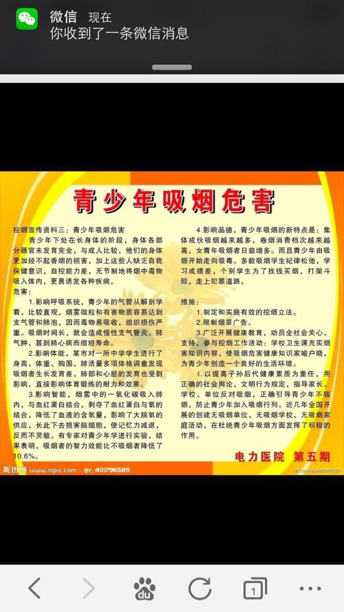 2、进学校宣传禁烟知识:走进学校,以学生喜闻乐见的形式,使学生了解烟草对人体的危害,使学生能自觉抵制烟草的侵犯,增强学生参与控制吸烟的社会责任感。