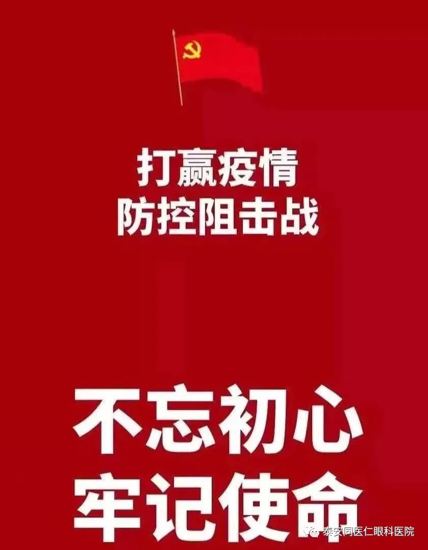 泰安同医仁眼科医院将继续按照党中央和习总书记的指示要求,以更加坚定的信心、更加顽强的意志和更加果断的措施,为打赢疫情防控的人民战争总体战阻击战贡献自己的一份力量!