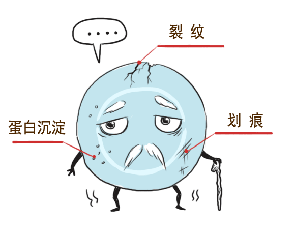 1、材料易吸附蛋白沉淀:为满足过夜佩戴的安全性,OK镜使用的硬性透气性材料加入了硅化物和氟化物。硅材料会加快镜片表面的干燥,易吸附泪液中的蛋白质和脂质。
