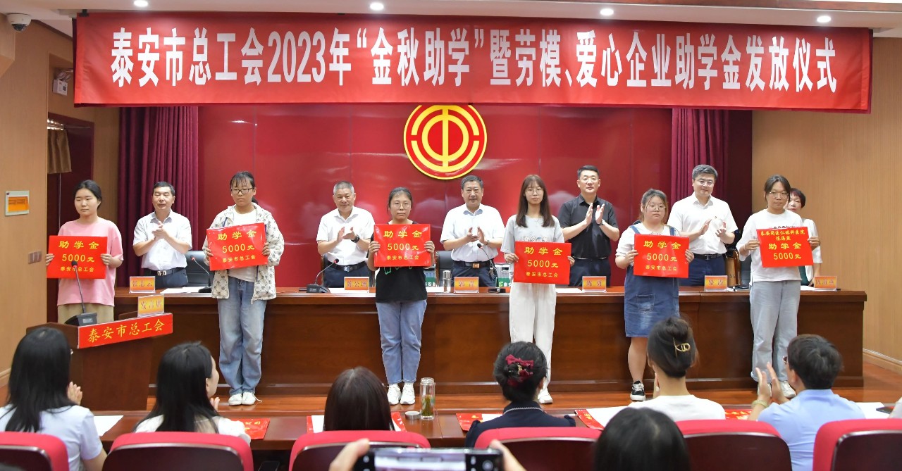 为进一步巩固拓展困难职工解困脱困成果,着力推动解决困难职工(含农民工)家庭子女上学难问题,8月25日,泰安市总工会举办了2023年“金秋助学”暨劳模、爱心企业助学金发放仪式,泰安市健康公益事业发展协会会长陈海燕参向6名家庭困难学生捐赠了爱心助学金,用实际行动彰显社会担当。