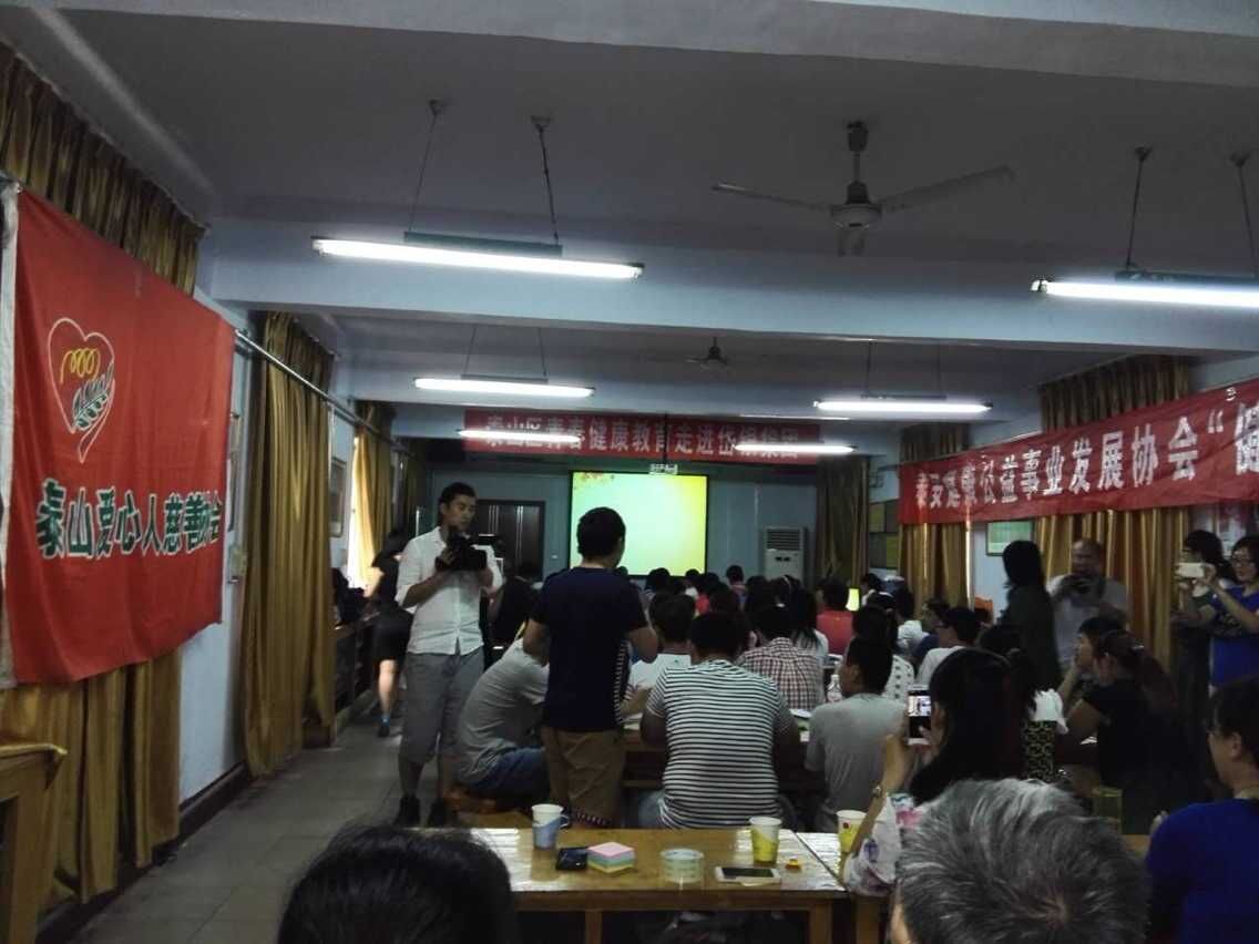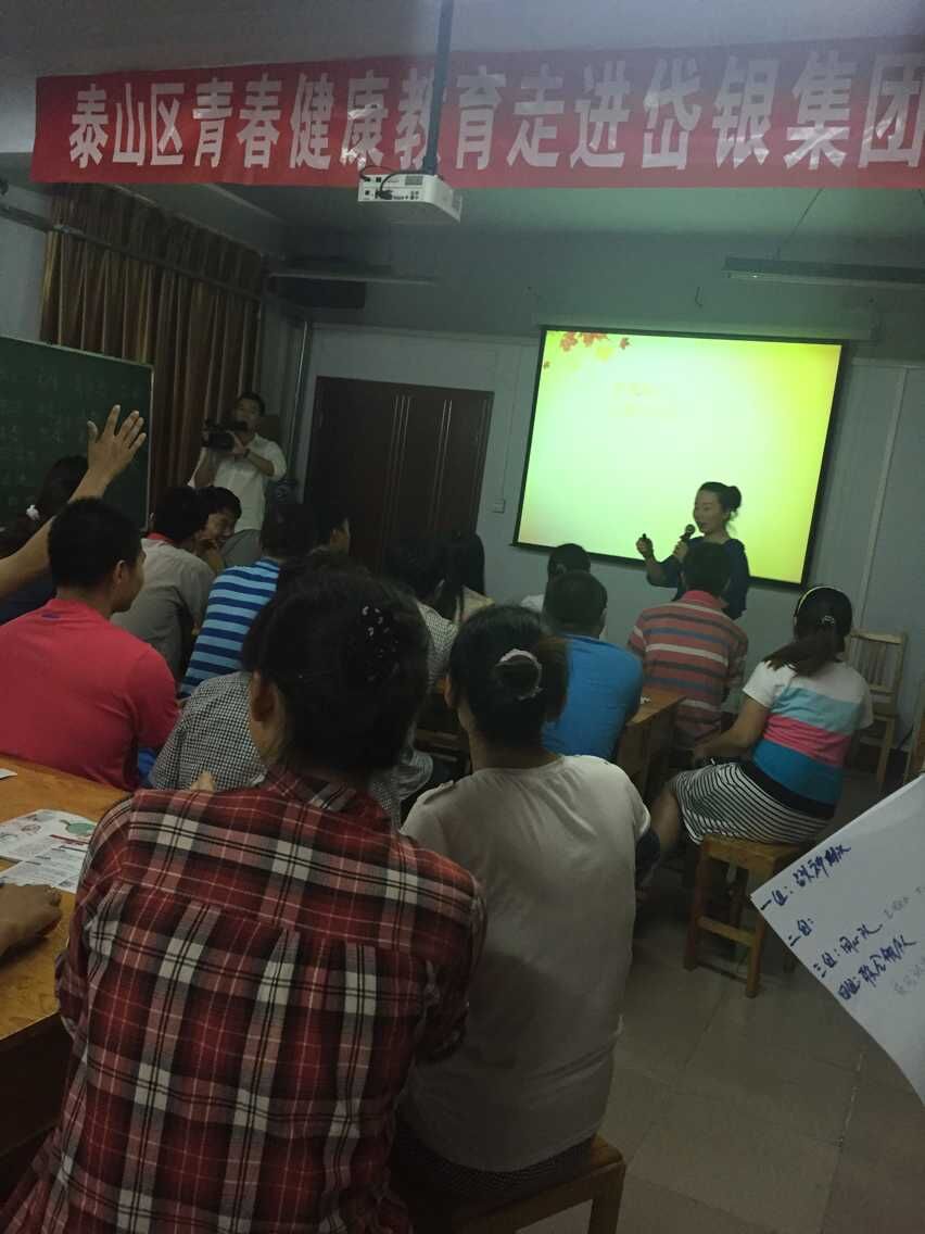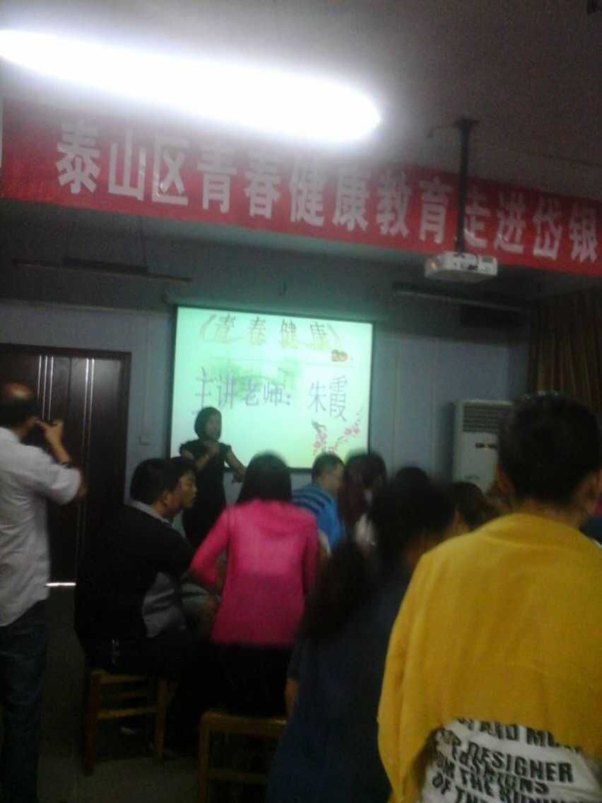 7.10下午在岱银大学,举行了泰山区青春健康教育进岱银集团大型公益活动---泰安市健康公益事业发展协会的讲师朱霞老师和任美老师的精彩主持博得了全场雷鸣般的掌声。本次活动主题:爱情观--谁更适合我。让现场参加活动的每一位职工感受到人生伴侣选择的重要性。本次活动主办:泰山区计生局,计生协。承办:泰安市健康公益事业发展协会,泰山爱心人慈善协会,协办:上高办事处计生协,团工委。致谢:泰安市电视台新闻零距离,泰山晚报,齐鲁晚报,中华泰山网。感谢今天参加活动的志愿者。