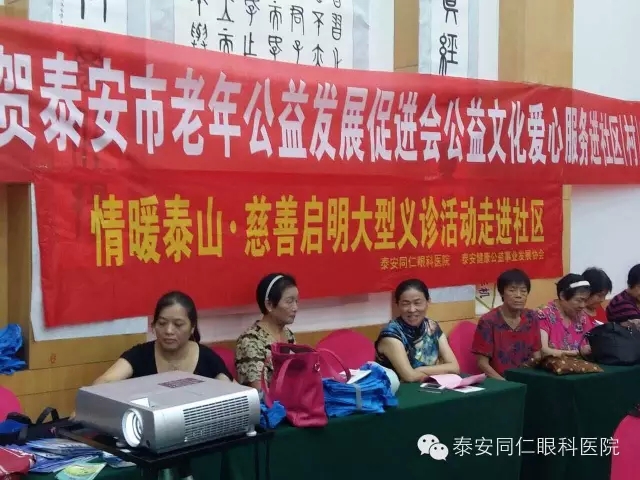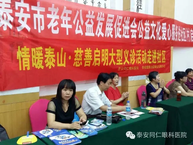 泰安同仁眼科医院志愿者在耐心讲解眼科疾病预防症状及治疗,发送纪念手提袋及预防眼病宣传册。