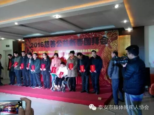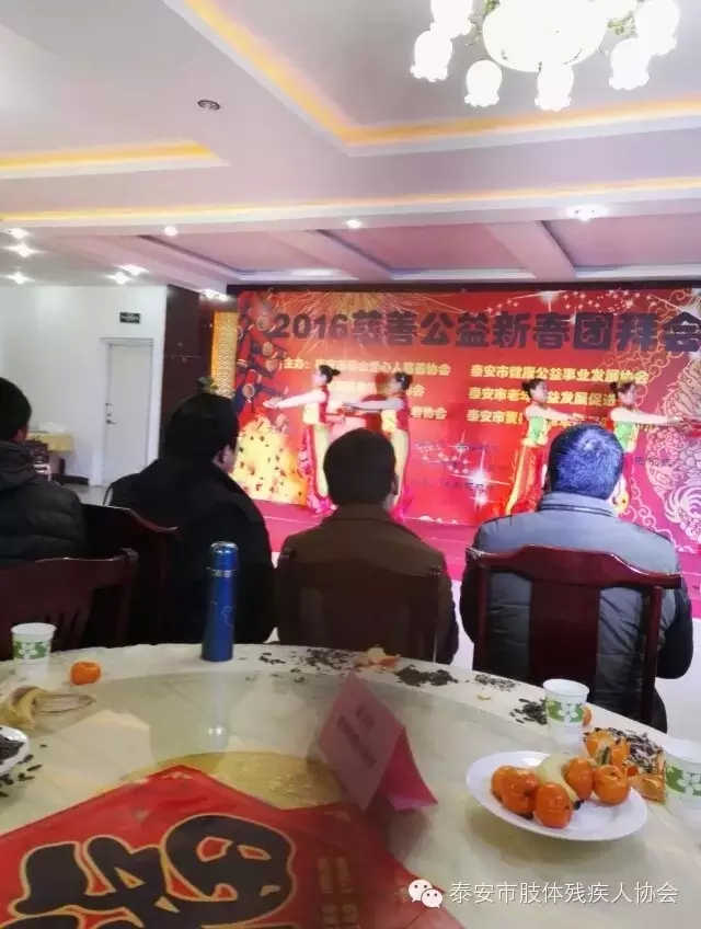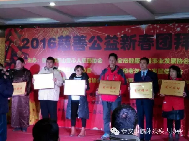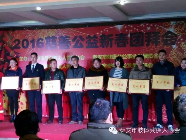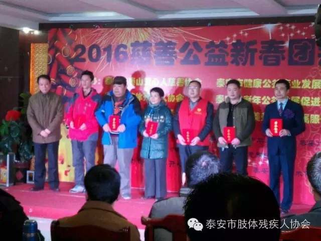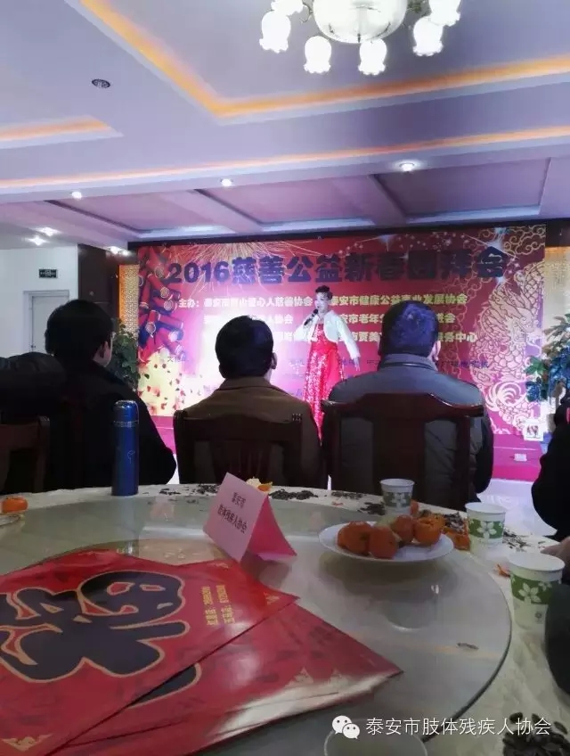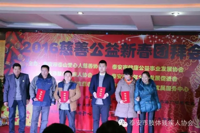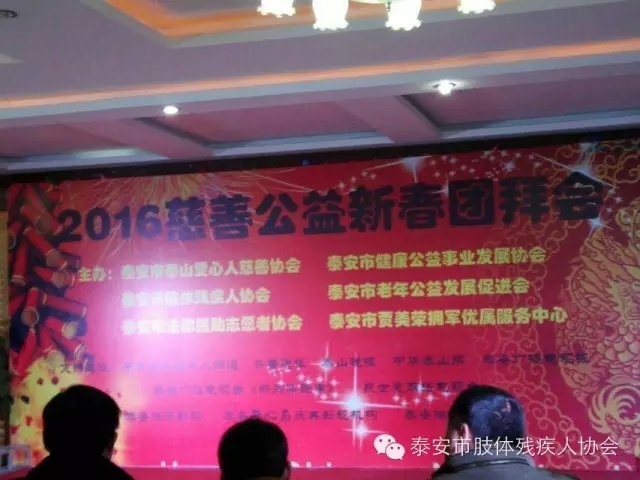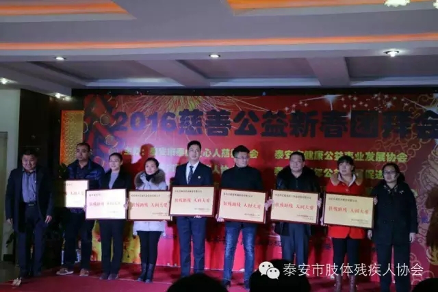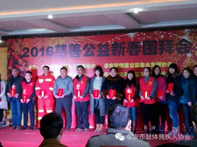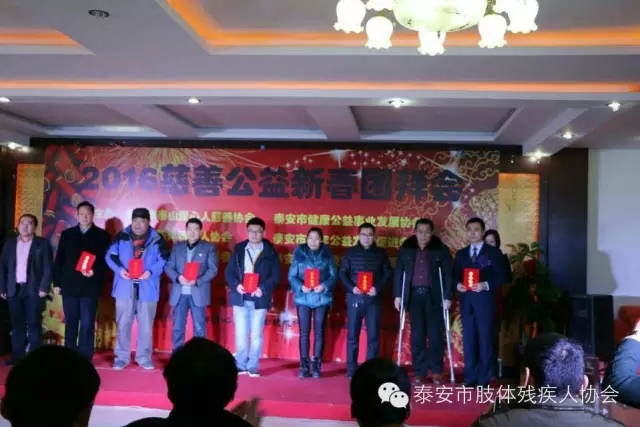 泰安市健康公益事业发展协会18日下午在泰安荣昌大酒店隆重举行了2016年新春团拜会,本次团拜会由泰安市泰山爱心人慈善协会、泰安市肢体残疾人协会、泰安市肢体残疾人协会、泰安市老年公益发展促进会、泰安市法律援助志愿者协会、泰安市贾美荣拥军优属服务中心共同主办。泰安开心岛庆典影视机构两位著名主持人为本次团拜会全程主持。