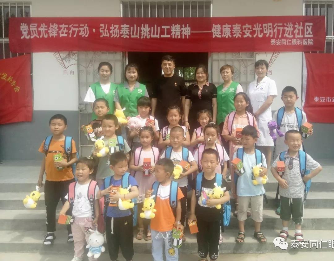 为迎接六一国际儿童节, 2019年6月1日,由泰安同仁眼科医院院长、泰安市健康公益事业发展协会会长、泰安市新的社会阶层人士联谊会副会长陈海燕带领志愿者们来到东平县,并联合东平县驻村第一书记一起拉开了六一儿童节公益专项活动的序幕。