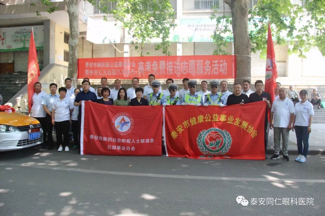 高考期间,泰安同仁眼科医院联合泰安市健康公益事业发展协会、泰安市新阶联公益事业分会、泰安汇元出租汽车公司开展为特殊群体、残疾学生、行动不便的高考生,提供"爱心❤️送考"服务,并得到市交通运输局、市公安局等部门的大力支持。