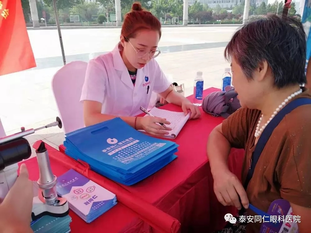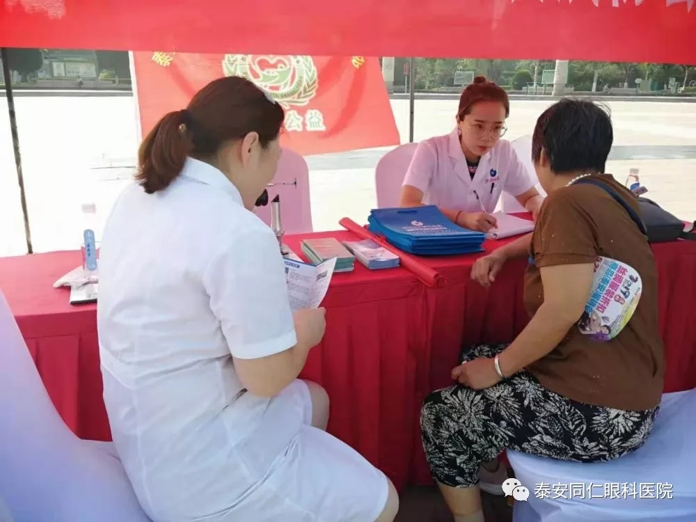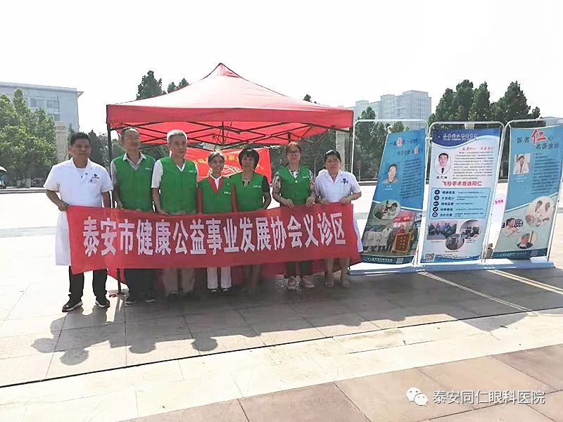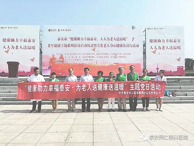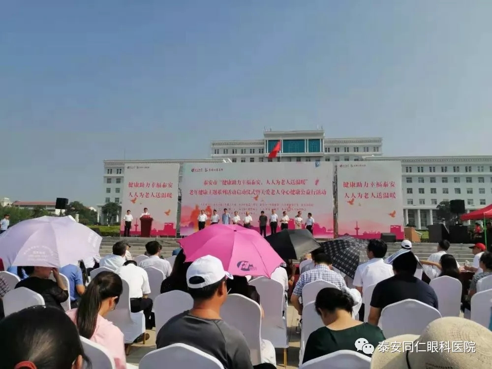 2019年7月26日(周五)上午,烈日当下,来自18家单位的白衣天使在岱岳区政府广场参加“健康助力幸福泰安,人人为老人送温暖”老年健康主题系列活动暨关爱老人身心健康公益行活动。泰安同仁眼科医院联合泰安市健康公益事业发展协会志愿者服务队、泰安市公益慈善类社会组织总支部委员成员为现场230余名老人义诊及健康宣教服务,受到一致好评。
