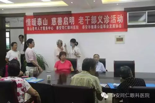 2016年7月22号 泰安同仁眼科医院结合两学一做实践活动,携手泰山老年人才服务中心和泰安医养中心,着眼于全方位服务老年人,为我市老干部进行免费义诊活动。