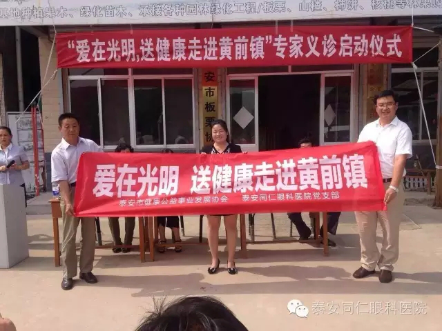为迎接党生日献礼,积极响应我党“两学一做”精神,深刻领会“两学”真谛,把服务农村建设,农民健康工作,“做”到细处,落实到深处,干到实处。全面提高党员干部队伍素质,进一步增强服务群众的能力和水平。泰安市同仁眼科医院党支部联合泰安市健康公益事业发展协会、泰安市板栗协会党支部,于6月30日,举办“深刻领会“两学”,“做”到实处暨“爱在光明,送健康走进黄前镇”专家义诊活动。黄前镇党委领导出席启动仪式。